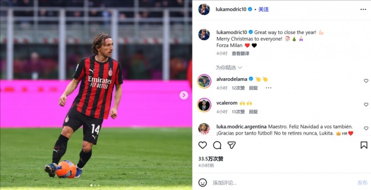 中超2025赛季 莫德里奇社媒:以最佳的神气铁心这一年,公共圣诞激昂,加油米兰