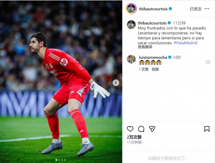 皇马门将库尔图瓦赛后社媒写谈:“对发生的一切感到极度颓唐。咱们需要答允起来重整旗饱读,没偶然辰悔悟,但不错从中吸取资格。“