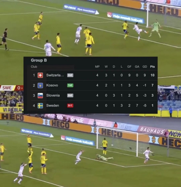 B组方面继续爆出冷门,瑞典队在主场0-1不敌科索沃,世初赛4场不堪!