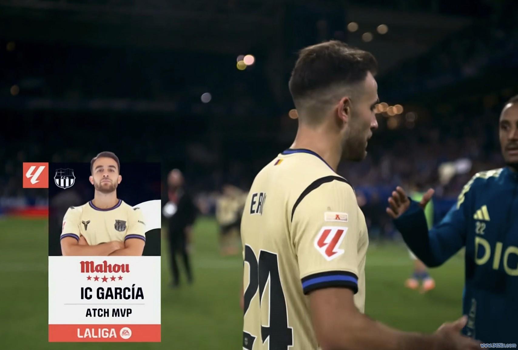 西甲第6轮,巴塞罗那客场3-1逆转打败皇家奥维耶多,此役打入一球的埃里克-加西亚当选西甲官方全场最好球员。