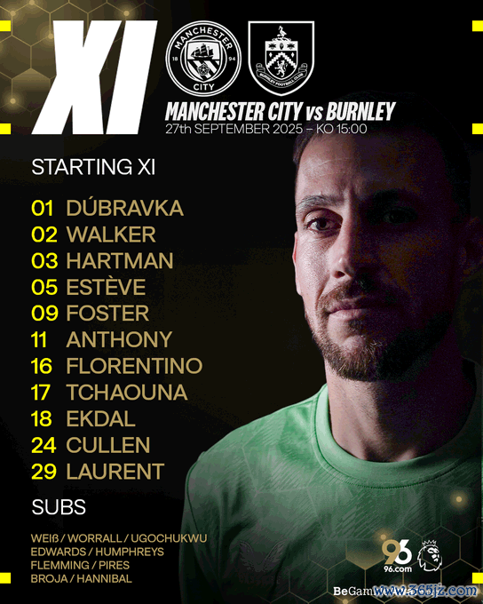 曼城vs伯恩利首发:哈兰德、福登先发,沃克战旧主