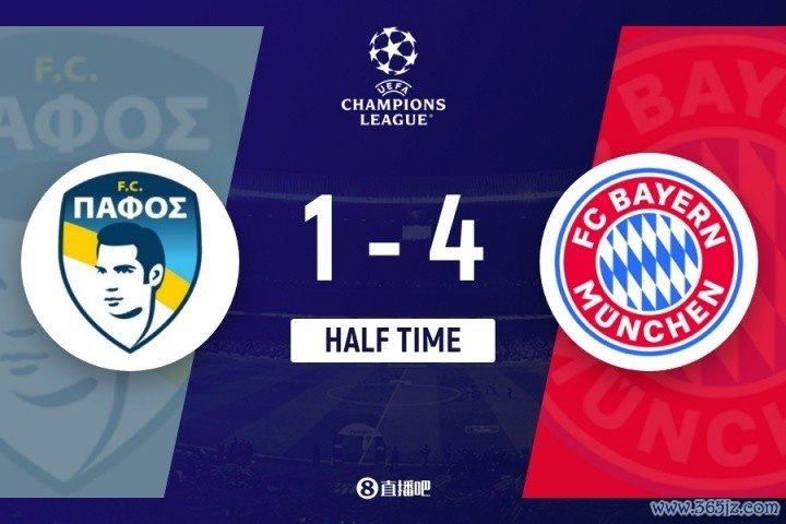 上半场莫得伤停补时,半场放置,拜仁暂4-1帕福斯。