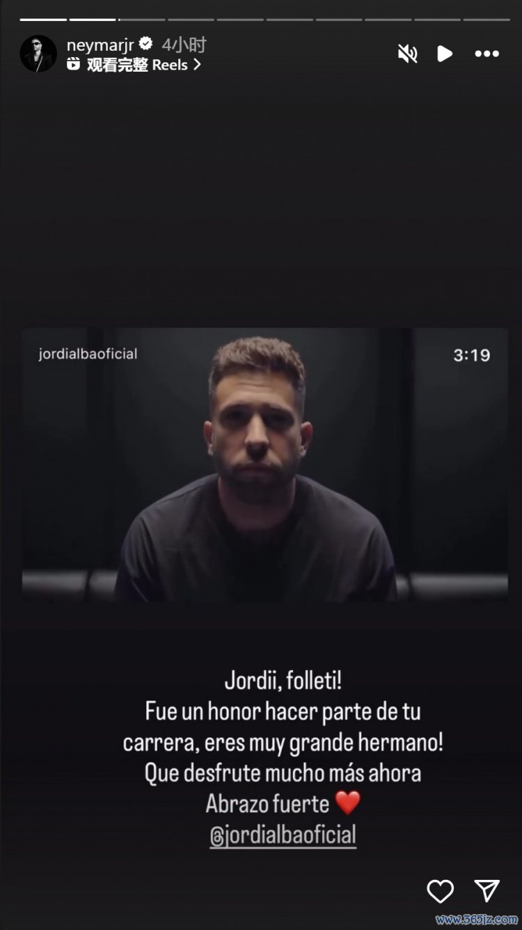 10月8日讯 阿尔巴将在本赛季抑制后退役,前队友内马尔社媒发文致意。