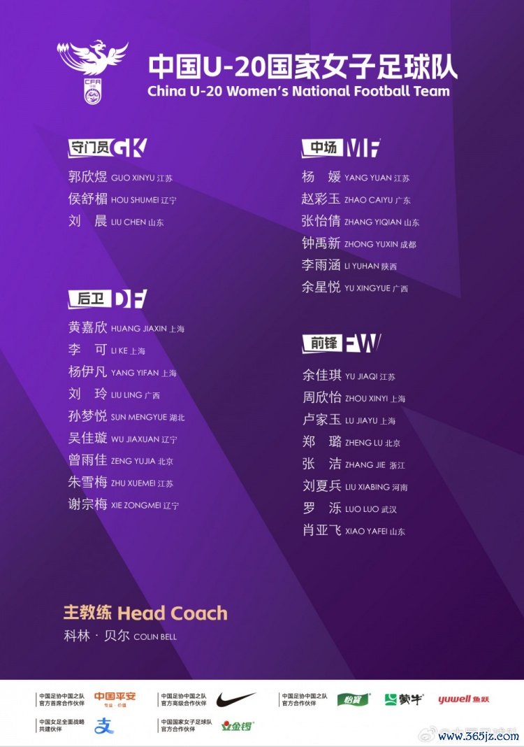 11月20日讯 中国足协官方发布中国女足U20名单,他们将于11月21日至12月6日赴西班牙皮纳塔足球中心进行友谊赛与拉练赛。