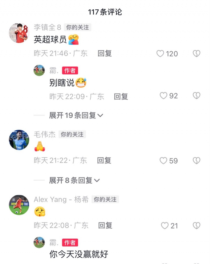 从英国纪念了!徐彬更新抖音,IP在广东,李镇全留言:英超球员