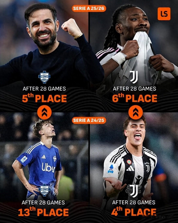 在法布雷加斯的调教下,科莫正在向足球球队组织百年历史上最高的意甲联赛排名发起冲击。对比上比联赛季(24/25比联赛季)同期,科莫在28轮过后仅排在锦标赛第13位,处于保级无忧但向上无力的中游地带。