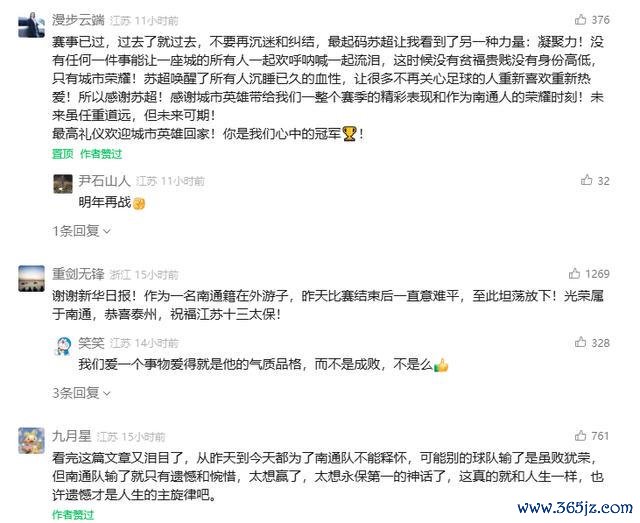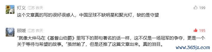 文中写到:“万众能干和赢输压力之下,南通队守住初心,追求踢最干净的足球,把每场比赛都四肢决赛去踢,获取了大都球迷讴歌,也讲授了纯正的体育精神和江海独到的‘狼性精神’。”