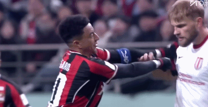 第42分钟,林加德试图抵牾莱切特快发随心球,后者伸手推搡林加德,后者立地回推了一把。莱切特再次双手推搡林加德,激发了两边球员的打破。