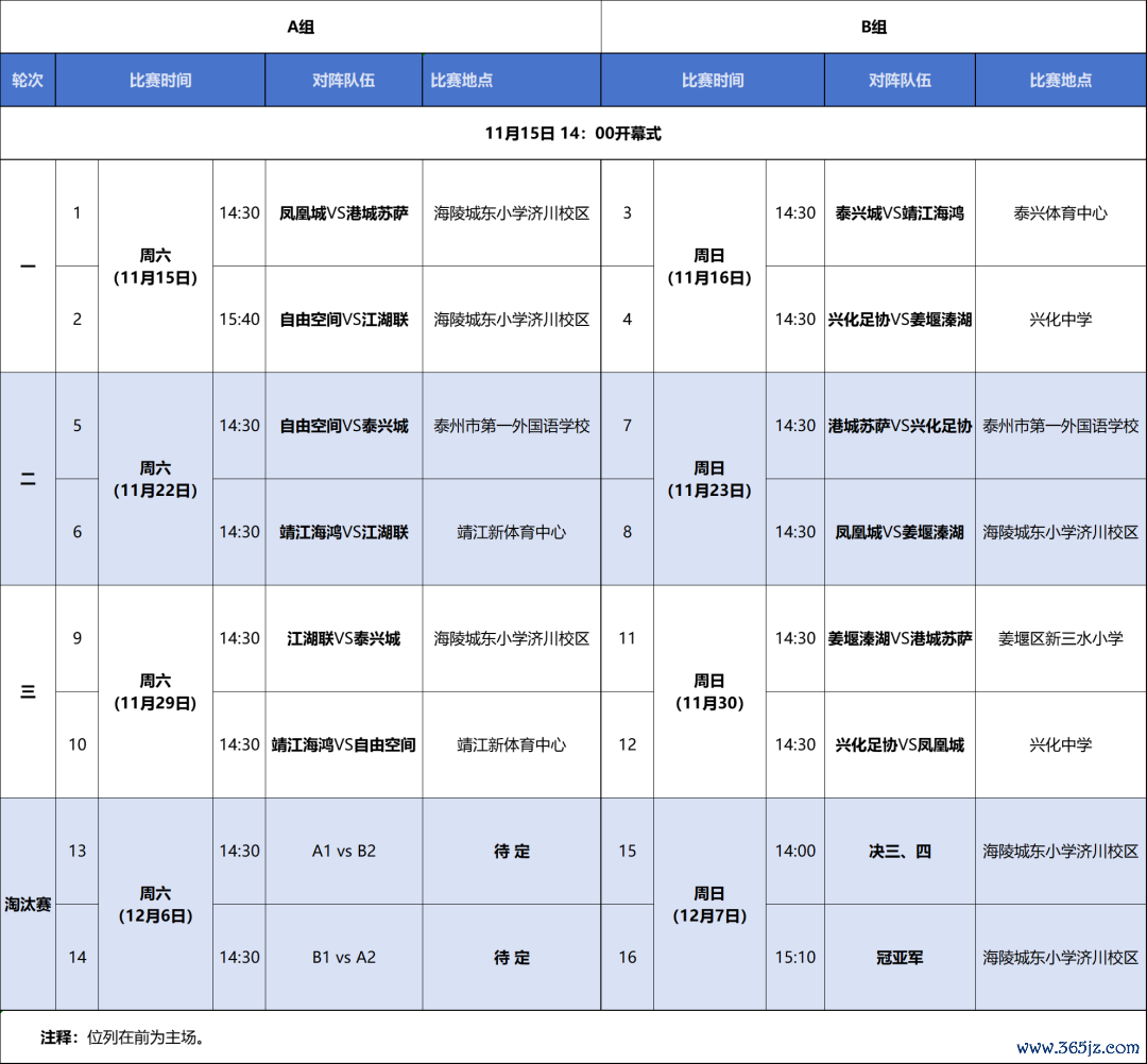 海陵区、高港(高新区)各2支参赛球队,兴化市、泰兴市、靖江市、姜堰区各1支参赛球队,共8支代表队。